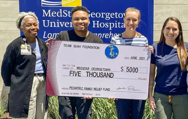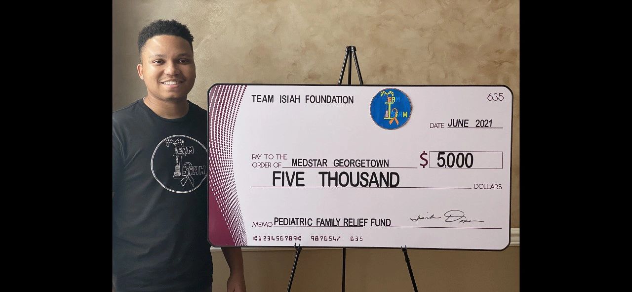 The Team Isiah Foundation recently awarded $5,000 to the Medstar Georgetown Division of Pediatric, Adolescent and Young Adult Hematology/Oncology. The donation will specifically support their Pediatric Family Relief Fund, which helps the families of those children being treated at Medstar Georgetown with medical and personal expenses (such as gas, utilities, food, etc.). Medstar Georgetown was where Isiah was treated when he was diagnosed with leukemia and Team Isiah Foundation is forever grateful to the awesome care he received there.